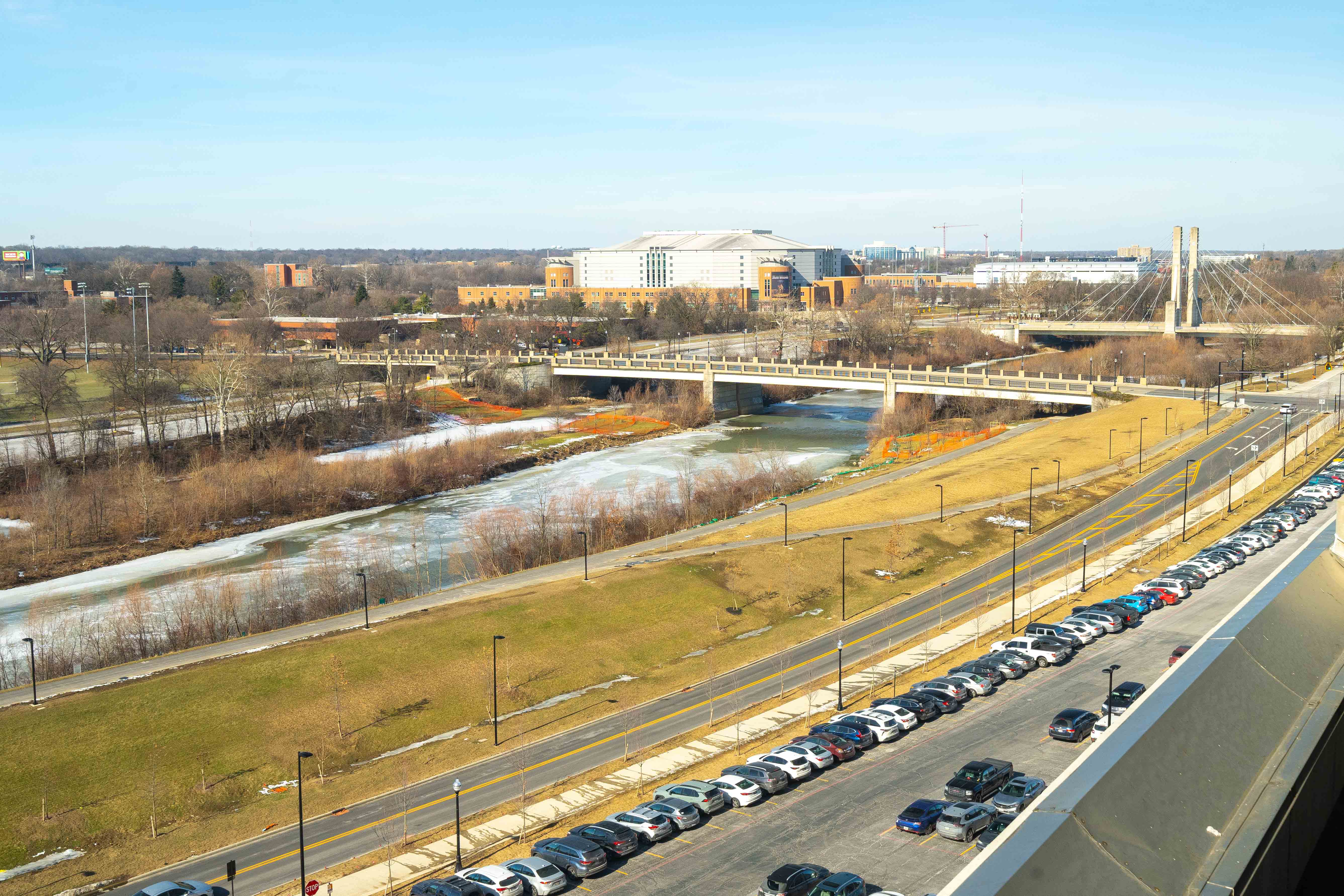 A view of the recently completed Cannon Drive relocation as seen from Ohio Stadium.