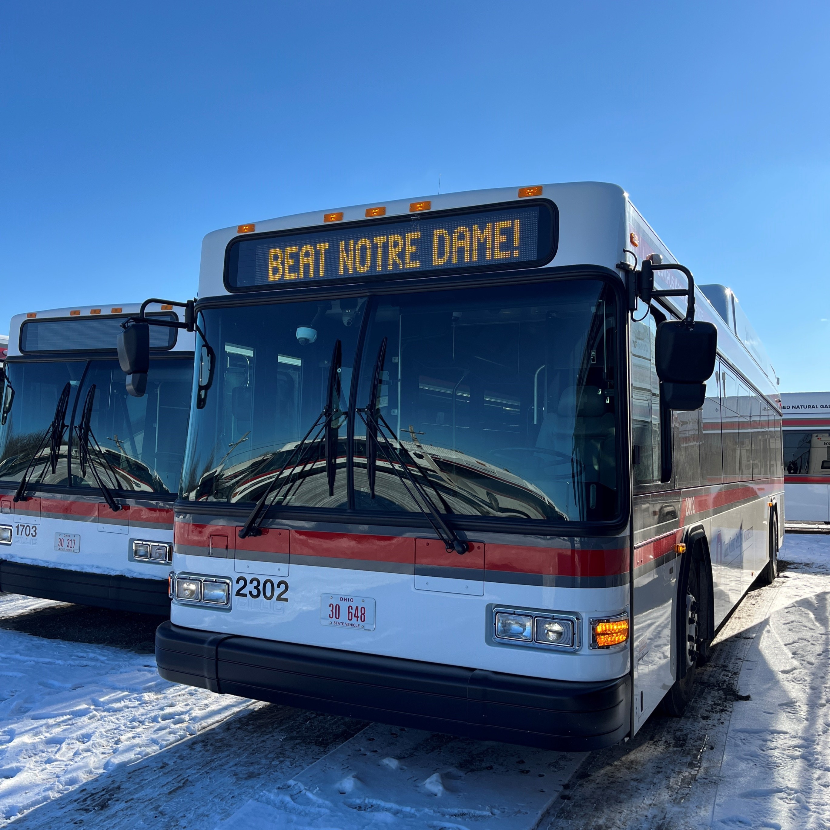 A CABS bus shows Buckeye spirit before the national championship game.