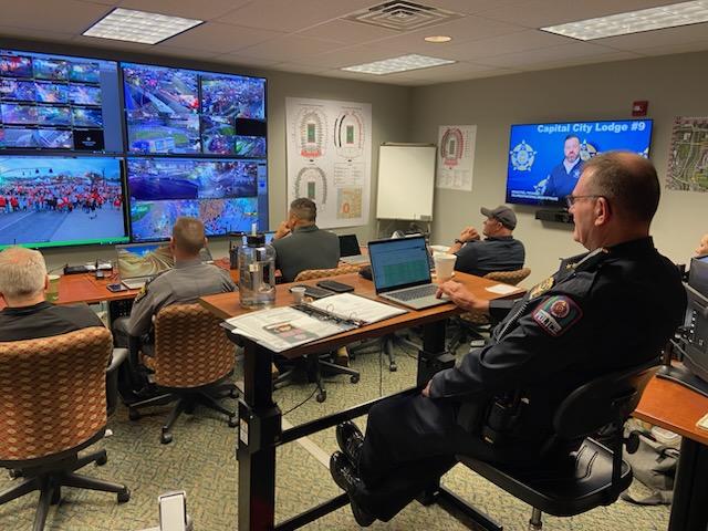 Public Safety and law enforcement partners ready for kickoff at the command center.